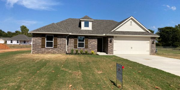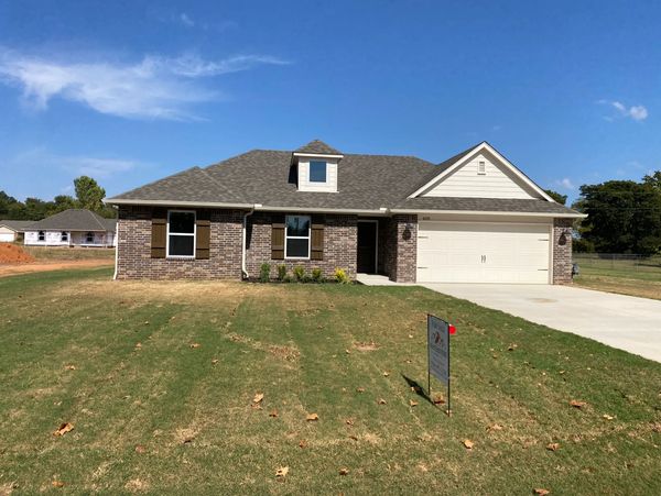 1529 sf unique open concept plan with built-in butcher block dining table, extensive wood look tile, granite throughout, split bedrooms, covered patio and perfectly situated on a 1/3 ac lot m/l. Convenient to schools, shopping and Fort Gibson lake!